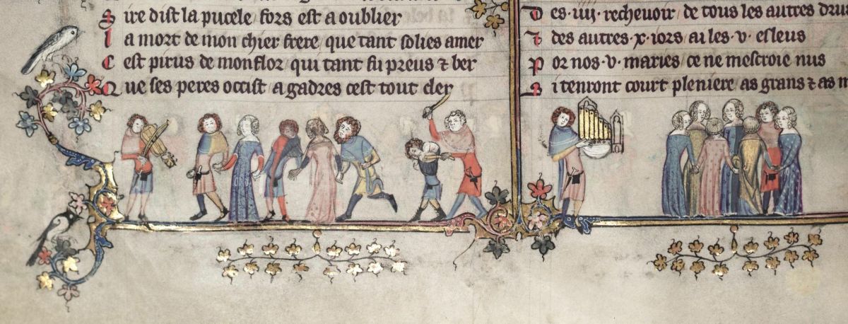 Queen Reason presiding over a court case, British Library MS Harley 4431 fol 218v