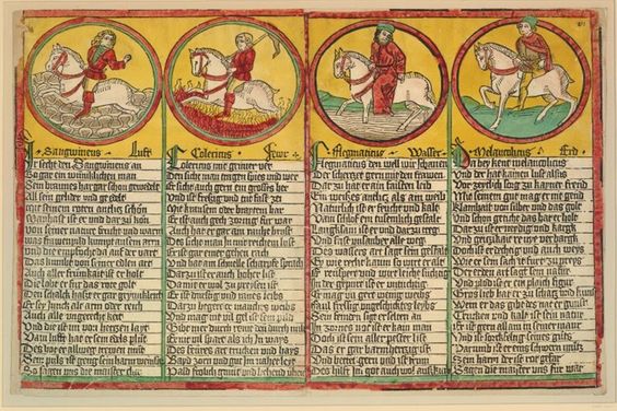 The four personality types, as horsemen, according to humoral theory. British Museum object 1932,0611.1.