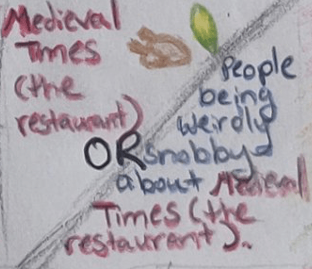 Medieval Times (the Restaurant) OR People being weirdly snobby about Medieval Times (the Restaurant)