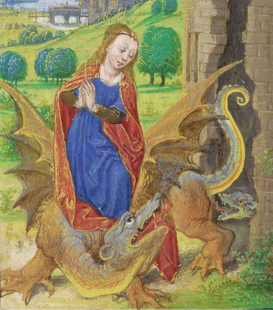 This has been widely, and rightly considered to be one of the coolest moves of all time and is usually what Margaret is commemorated for, and how you know you are looking at Margaret in art. She’s the baddie busting out of the dragon comme ça:
