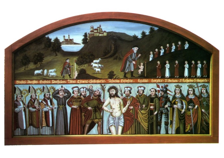 Because Margaret did cool stuff like bust out of dragons she was very very popular in medieval Europe. In the medieval German lands, by the fourteenth century, she was named as one of the fourteen holy helpers who were thought to be particularly down to intercede with you in times of sickness.